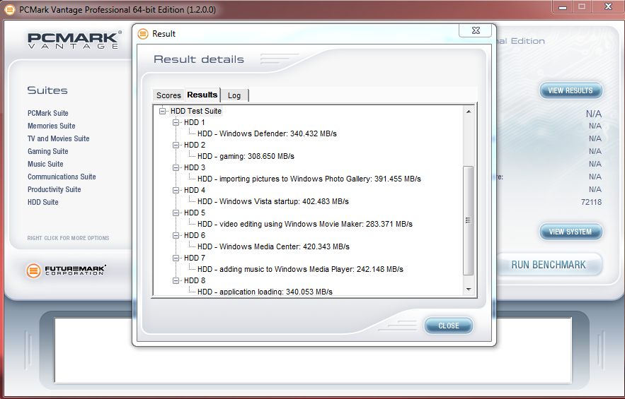 Technology X uses benchmark software called PCMark Vantage x64 HDD Suite to create testing scenarios that might be used in the typical user experience. There are eight tests in all and the tests performed record the speed of data movement in MB/s to which they are then given a numerical score after all of the tests are complete. The simulations are as follows: