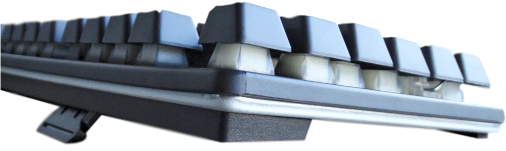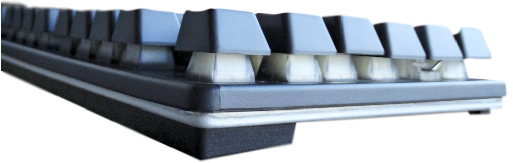 Coming in at 44 cm by 14 cm, combined with a sleek aluminum based body and weighted metal back panel, you’re sure to love the feel of the GX-K3. We did notice however when you extend the back legs of the keyboard there are no rubber ends so the keyboard slips and slides a little easier in its “tilt” position. This is due to only the front having grips touching your desk.