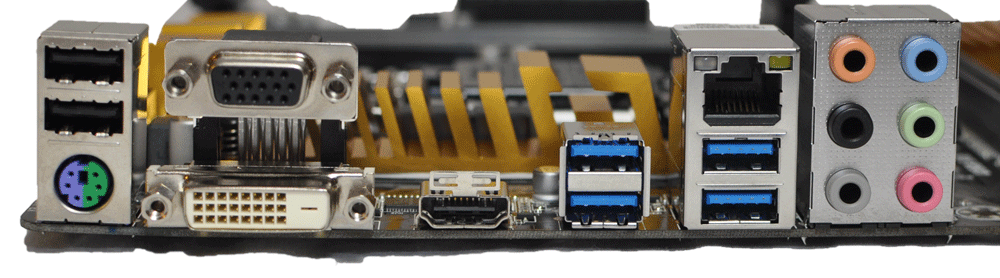 When it comes to input and output connectors we don’t have too much going on back here. You have two USB 2.0 ports, which are sitting directly above a single PS/2 port, VGA as well as DVI output, an HDMI port, four USB 3.0 ports, gigabit Ethernet, and finally your 7.1 audio connectors.