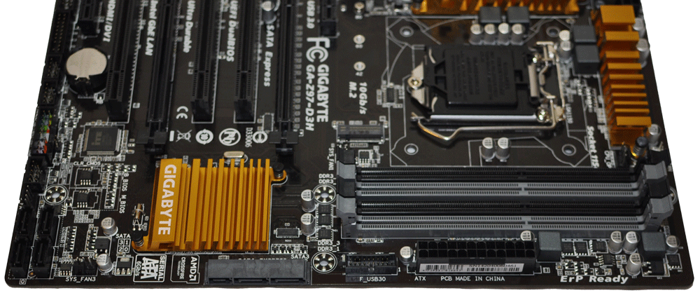 Looking along the right edge of the motherboard, it doesn’t appear as though we have a lot of connectivity options. Again, starting on the left side and moving right, you’ll find another 4 pin PWM fan header, a single SATA Express port, front panel USB 3.0 header, and lastly your 24-pin ATX power connector.