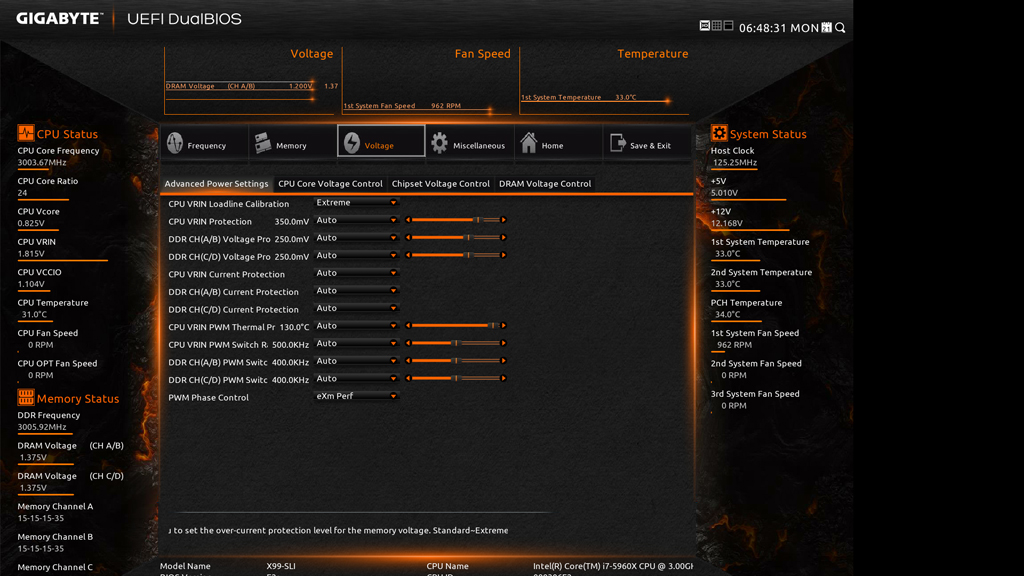 As you can see in the images of the rest of the tabs, you can tweak memory settings, voltages, advanced power control settings, PCIe slot configuration plus many more options.