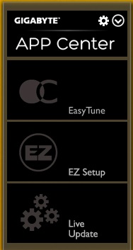 Gigabyte has included a nice bundle of software with their motherboards in which we will look at two main programs: App Center and EasyTune. Gigabyte’s APP Center is a tiny applet which sits in your system tray and allows you to easily access features to your installed Gigabyte programs.