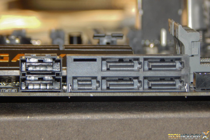 The board also features Gigabyte’s Ultra Durable components. The VRMs are quite heavy due to the heatsinks Gigabyte uses, while it makes the board quite a bit heavier it does wonders to keeping the VRMs cool while overclocked. This is to insure stability and to reduce wear and tear on the 8+2 Phase power delivery. Also not to forget it has ferrite core chokes which helps overclocking performance yet again. Finally to round off the power delivery, the board has a full 8-pin CPU Connector.