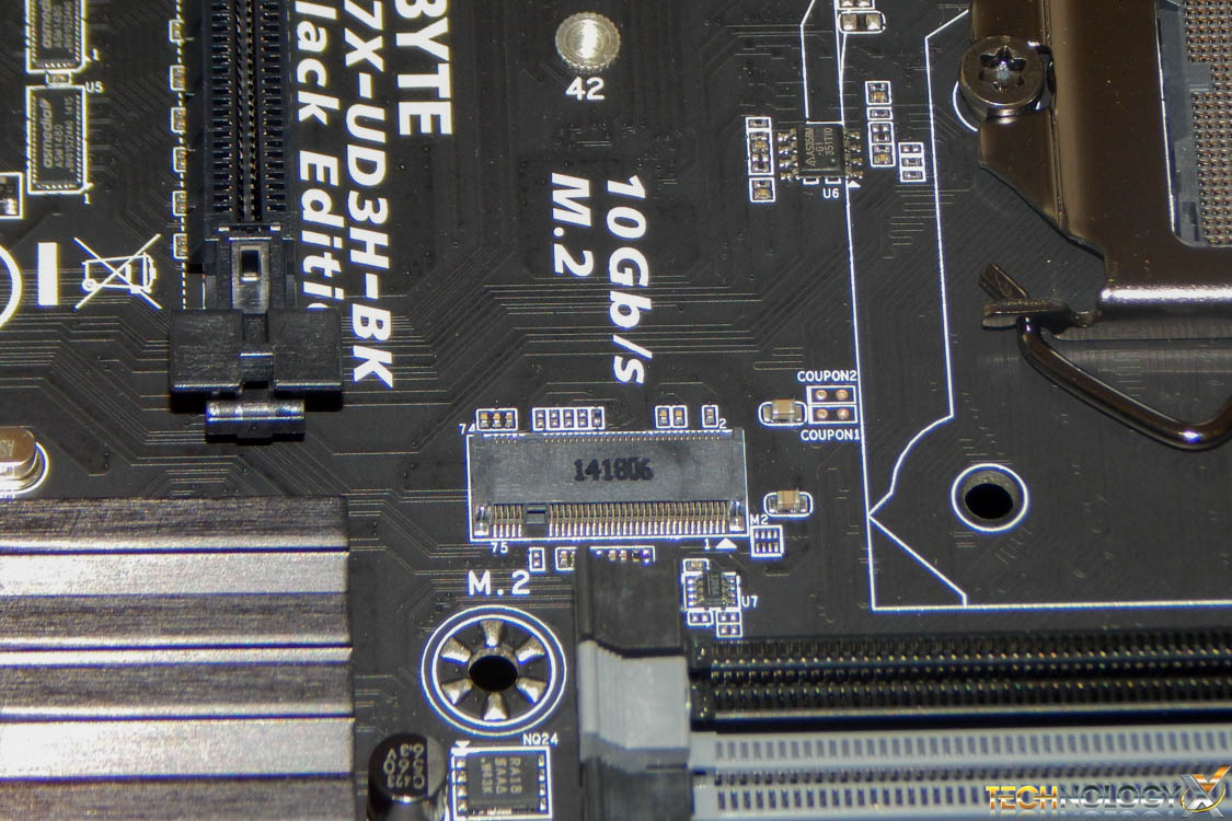 The board also features Gigabyte’s Ultra Durable components. The VRMs are quite heavy due to the heatsinks Gigabyte uses, while it makes the board quite a bit heavier it does wonders to keeping the VRMs cool while overclocked. This is to insure stability and to reduce wear and tear on the 8+2 Phase power delivery. Also not to forget it has ferrite core chokes which helps overclocking performance yet again. Finally to round off the power delivery, the board has a full 8-pin CPU Connector.