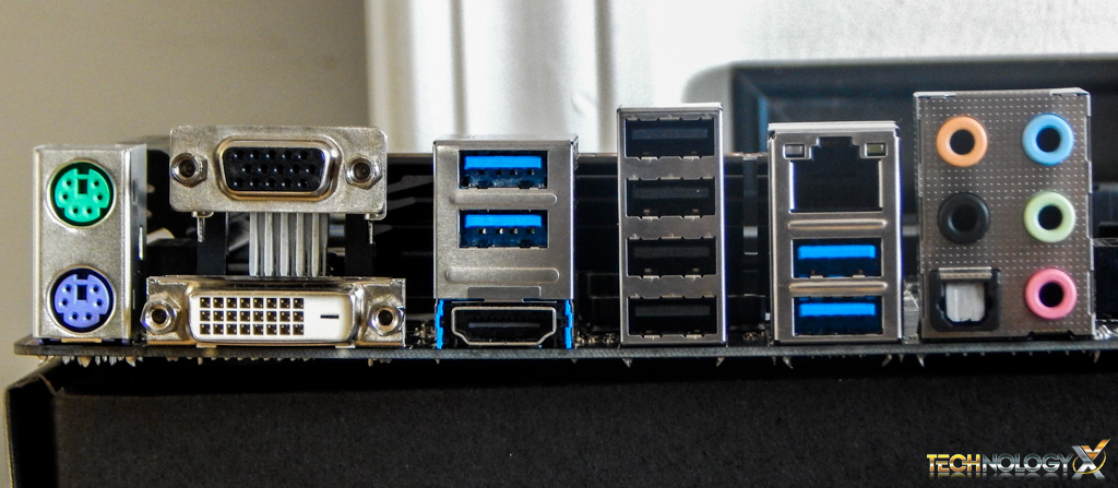 For the back I/O we have 4 USB 3.0 Ports and 4 USB 2.0 Ports for a total of 8 on the back, along with an Intel Ethernet port, your standard Audio ports, PS/2 Keyboard and mouse, which seems a bit excessive as one is more than enough for most users. Also if you plan on using the integrated video we have an HDMI, DVI and VGA Ports for all your visual needs.