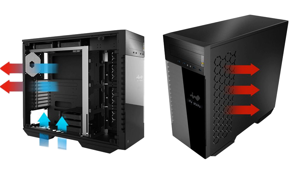 The 509 has an outstanding airflow system, with the addition of a slotted side panel this allows for added heat dissipation.