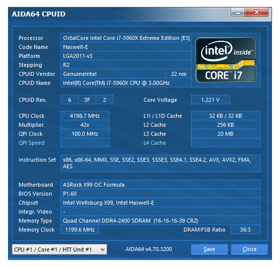We’ll be covering this topic more extensively in our upcoming X99 overclocking guide, however for the purposes of this report we overclocked our test sample to two different speeds and ran our benchmark suite under both configurations as well as stock. The overclocks reached for the purposes of this test were 4.2GHz and 4.5GHz, with a voltage of 1.221 and 1.358, respectively. We achieved these results via a simple multiplier change and left the BLCK and Memory at their stock frequencies of 100MHz and 2400MHz.