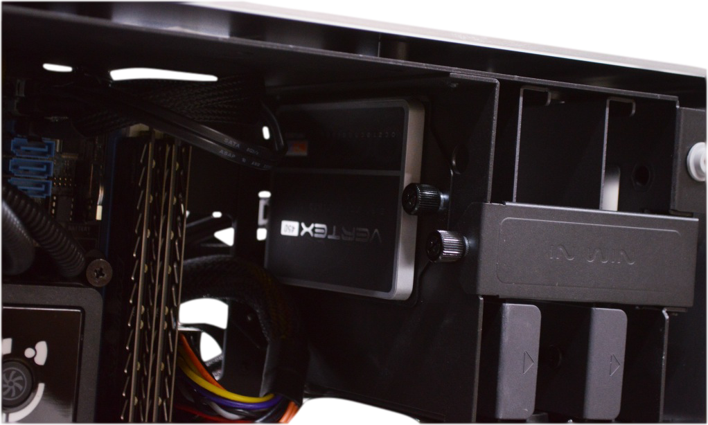 Within the INWIN 901 chassis, there is a drive bay that allows for up to four 2.5” disk drives to be equipped.