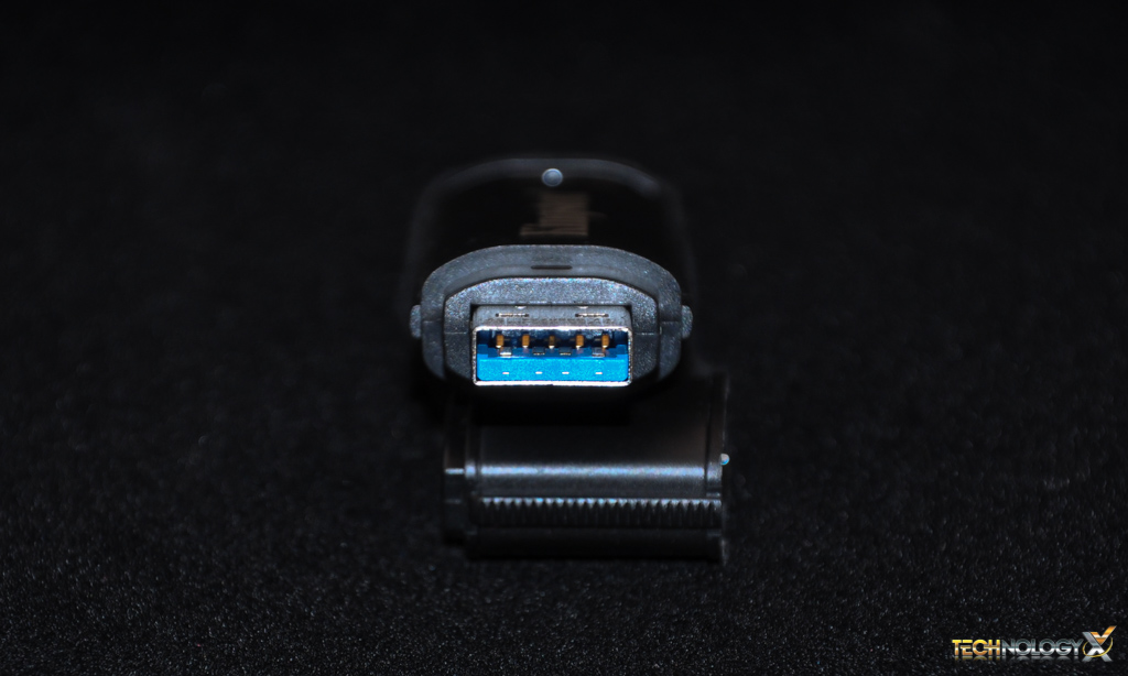 The flash drive is a simple design with size and logo on the front and model shown on the back. The build is of a titanium-coated stainless steel casing and is waterproof thus protected against water damage. We would not advise to go and drop the flash drive in a bucket of water for example as we are uncertain about protection against full submersion.