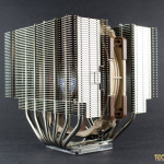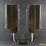 Once we remove the fan, we get a good look at the heat-sink itself. As we can see it is a large dual-tower aluminum and copper heat-sink, which features a similar design to the NH-D14 with some major improvements. Its measurements are 150mm wide, 160mm tall and 135mm deep without the fan, and the height and depth are increased to 165mm and 161mm respectively, with the fan installed.
