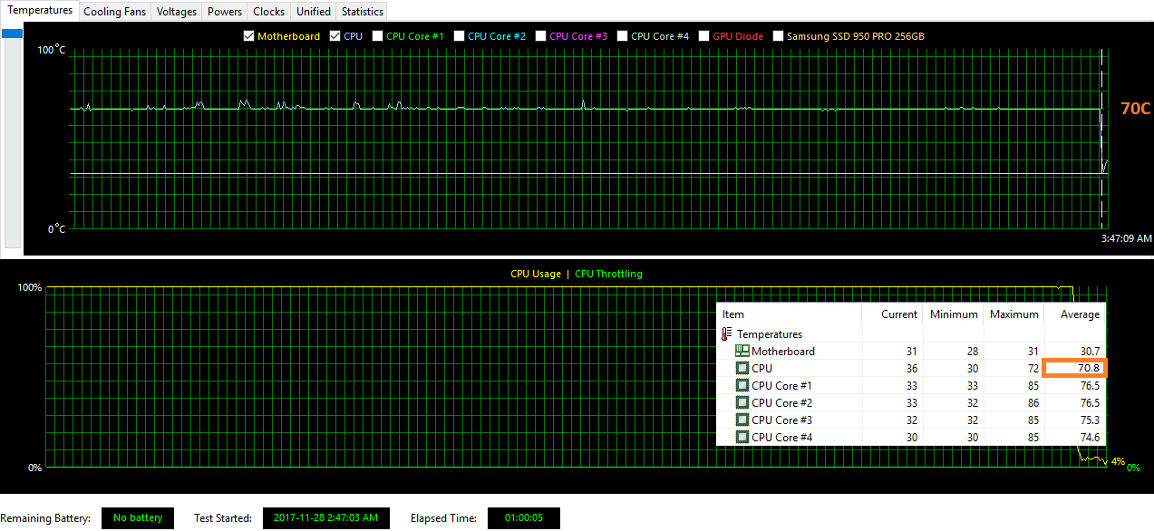 These results once again are quite impressive considering we are talking about an air cooler with nothing but a 120mm fan on it. With an average of 70.8C it is pretty warm but very stable as you can see. This goes a long way into showing the quality of product we are dealing with here.