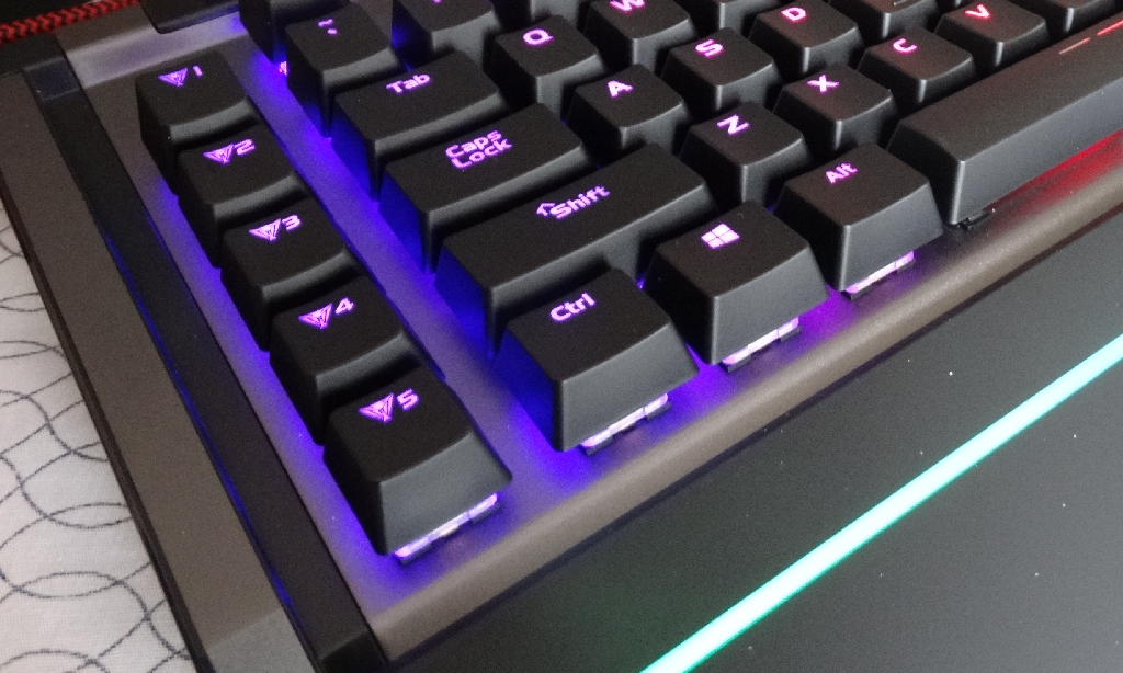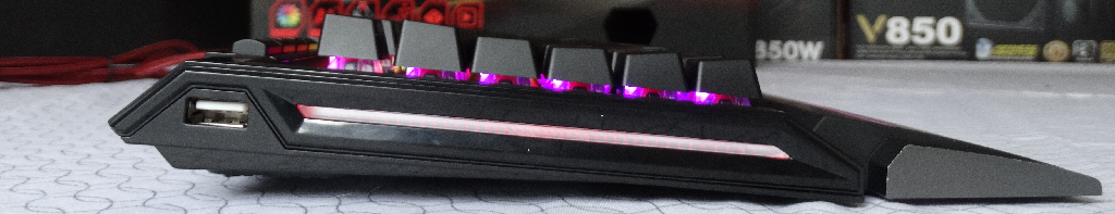 However, during extended or more intense use of the board we found the LED bar losing connectivity briefly, this is most likely due to a loss of connection as when your hands are placed on the board in typing position, your right hand palm is directly above the connectors so when typing the push-off of the fingers on the buttons is causing a loss of connectivity briefly. If you play in dark rooms and enjoy your lighting, this will be a little annoying during game play.