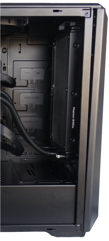 Overall the build was good, we thoroughly enjoyed the fact that the PSU is separated and hidden from the rest of the components and keeps the cords with a nice clean look to them. We also chose to install our Cooler Master V850 PSU inverted. Phanteks in our opinion has made a hiccup in the build of the chassis by limiting where you can place your AIO coolers.