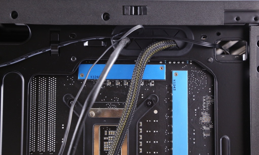 From above and below the motherboard, to the rear of the modular storage mounting bays to the PSU, there is not a single option not considered. Even to include hoop-n-loop cable ties on the rear side of the chassis.