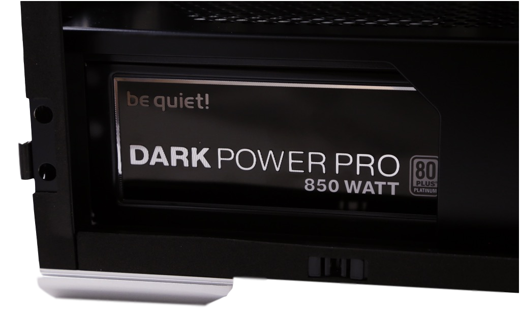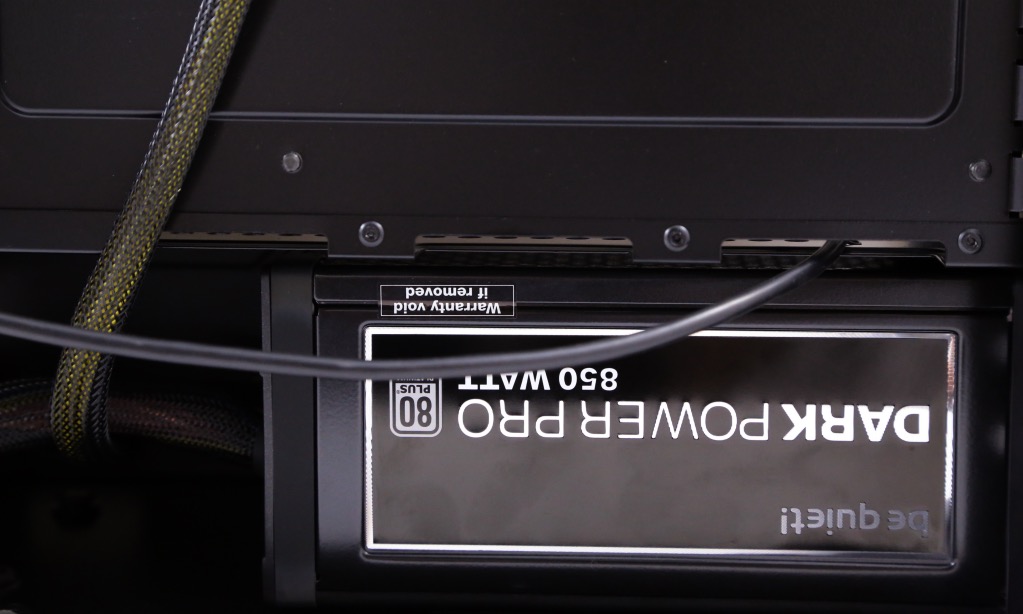 The PSU is hidden, but it leaves a large space for running your larger PSU cables up the backside of the chassis.