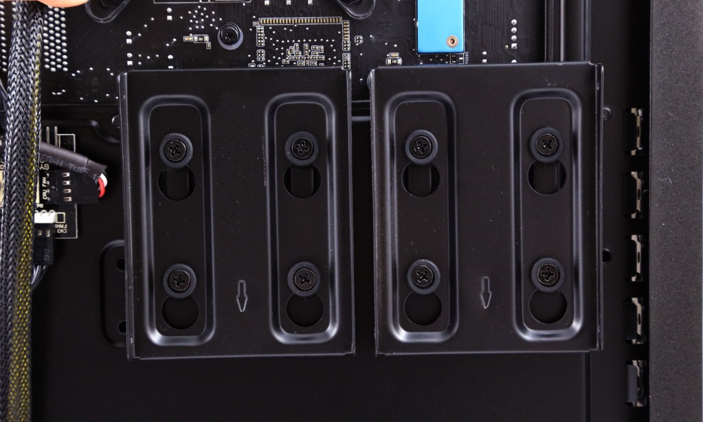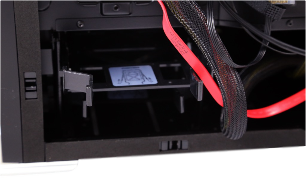 On top of hiding the PSU, your storage device is also hidden, in two Drop-N-Lock sad brackets.
