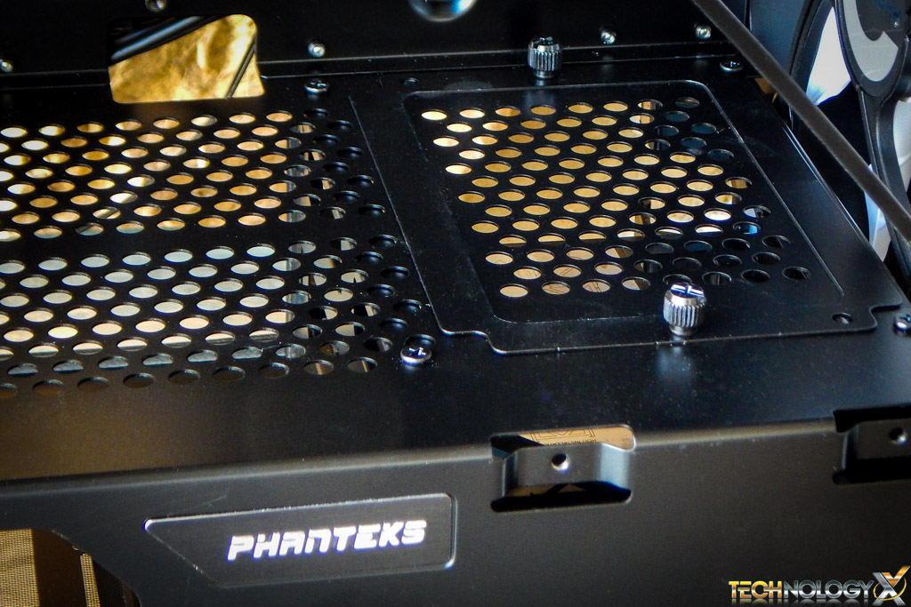 On the back side we also see two brackets for installing 2.5 inch drives behind the motherboard, we like the way Phanteks has set it up, not leaving open spots to the back of the motherboard. In the past we’ve shorted out motherboards due to screws touching the solder points on the board. This solution is a great way to go about it.