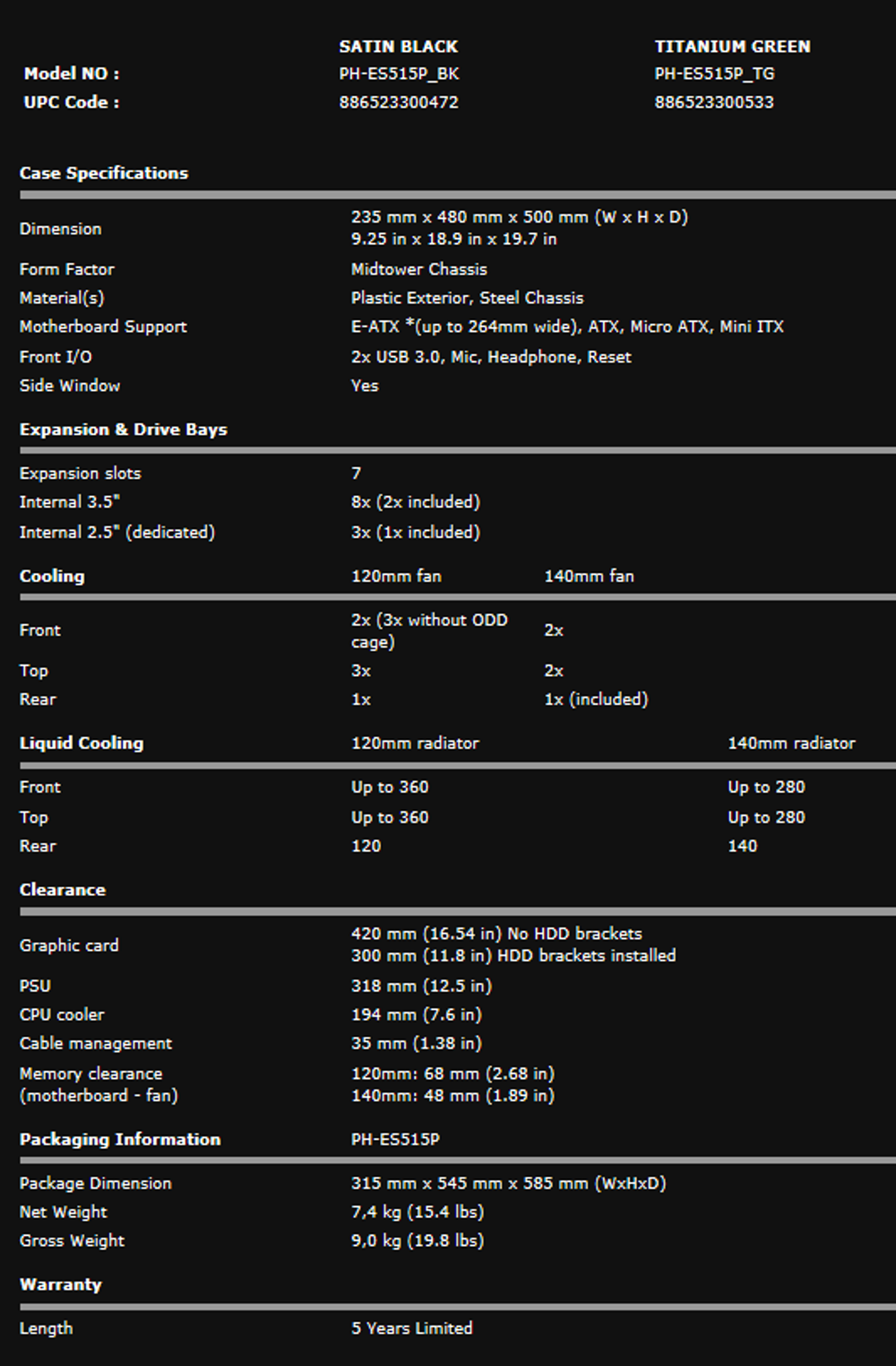 The Enthoo Pro M is currently selling at Amazon for $84.99 in the US, and is available in either Satin Black or Titanium Green. Our report today will analyze what sort of value the Enthoo Pro M represents for this price point. Below are the complete specifications: