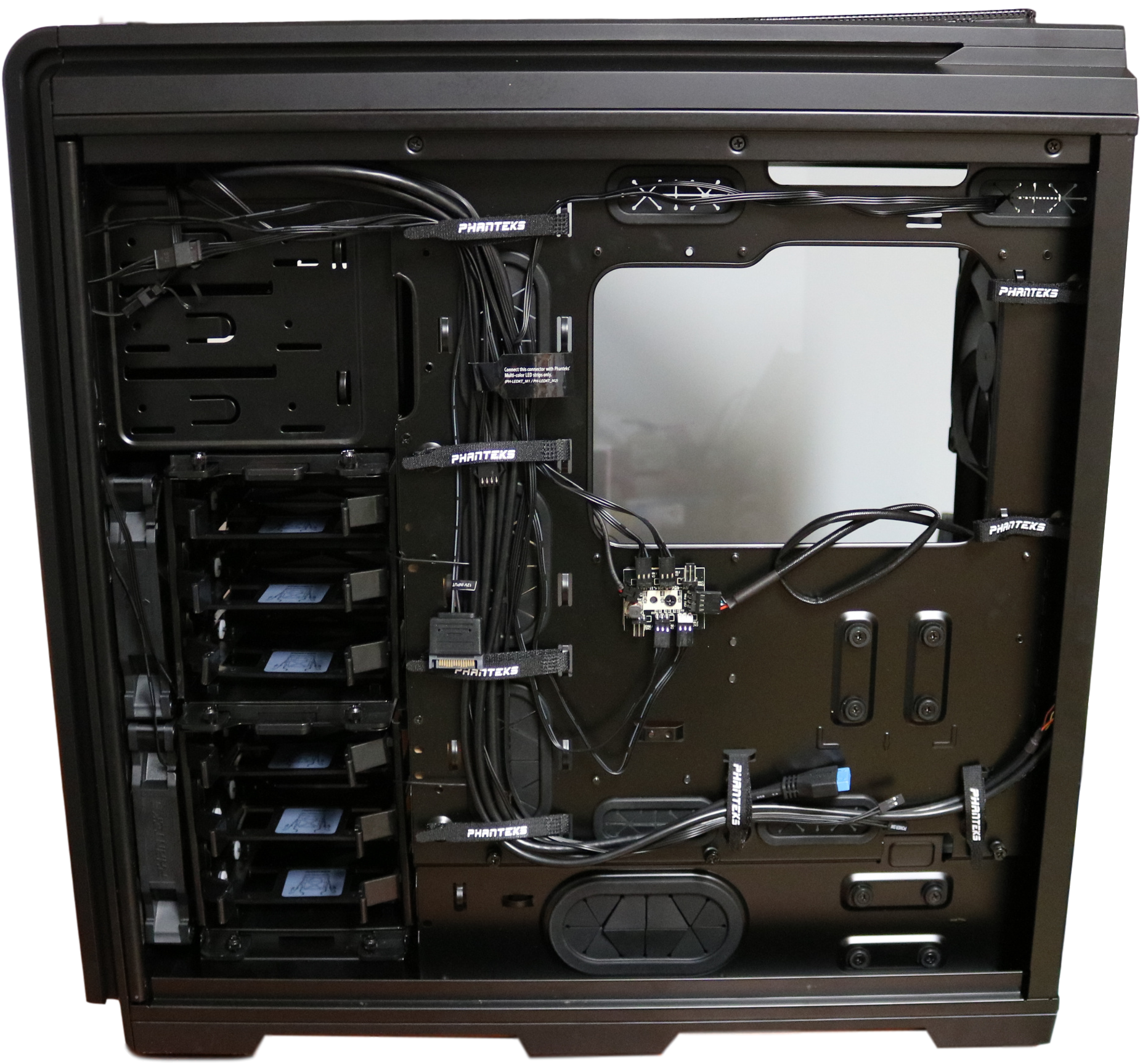 On the other side when you take the metal cover off you will find the cable management area as well as six quick release 3.5″/2.5″ slots. On this side there are two extra 2.5″ slots that can be used instead of or in conjunction with the front 2.5″ quick mounts.On the bottom are two dust covers that can be removed and cleaned quite easily by just sliding off. This makes weekly cleaning that much easier.