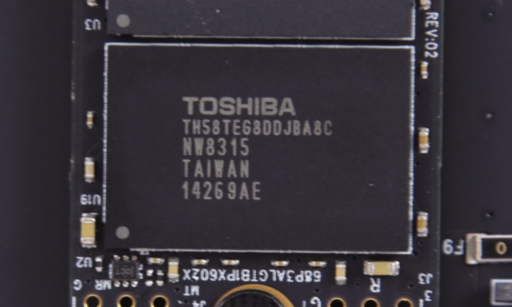Once you look over the PCB you will find eight packages of Toshiba’s A19 NAND, each of which has a capacity of 32GB in capacity and, once formatted, has a total of usable space of 238GB.