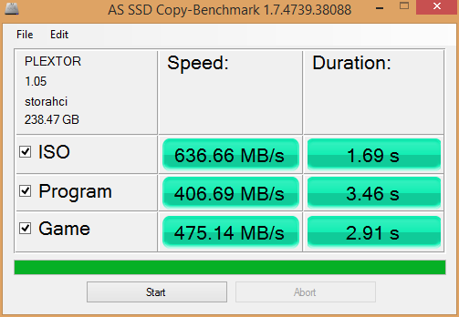 Our third benchmark tool has proven that the M6e Black Edition performs well when using incompressible data, hence why we insist on using a multitude of different testing parameters to gauge the quality of the SSD’s. Another interesting feature of the AS SSD Benchmark is that it also can test durations and speeds of copying various files, this is an important test for our digital media professionals who require top transfer speeds.