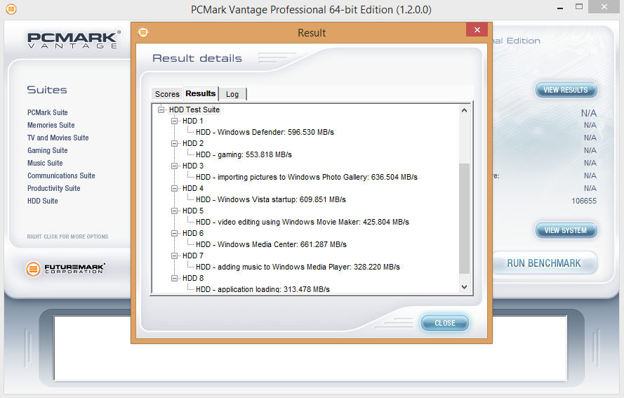 The M6e Black Editions achieved a total score of 106655, which is an extremely good score. Out of all the benchmark tests ran throughout the HDD suite of PCMark Vantage, the highest transfer speed recorded was 661 MB/s when video editing in Windows Media Center.