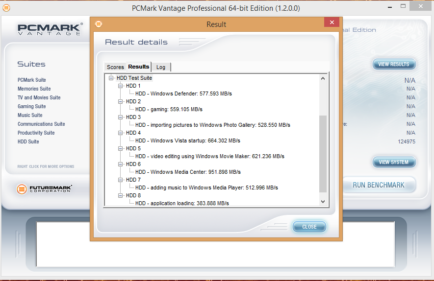 Lastly, we run our M6e Black Edition through Vantage. As we expected our total score increased to 124975, while our fastest recorded transfer speed was that of Window Media Centre at 951 MB/s.