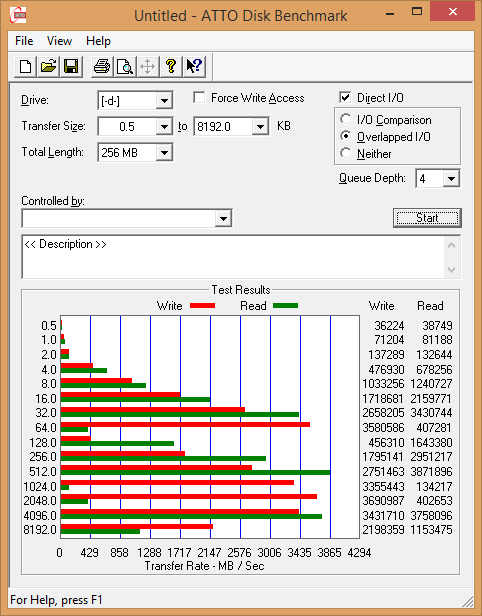 It is important to remember that we are using DRAM for data transfer, hence ATTO’s more skewed visualization. Consistent transfer speed performance is not as common as what we usually will be able to visualize with SATA 3 testing.
