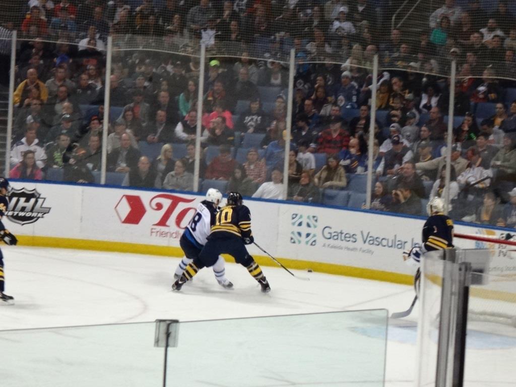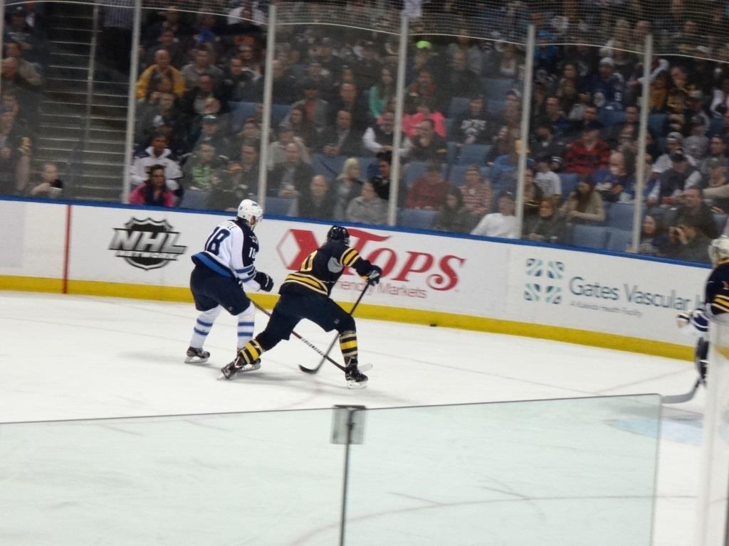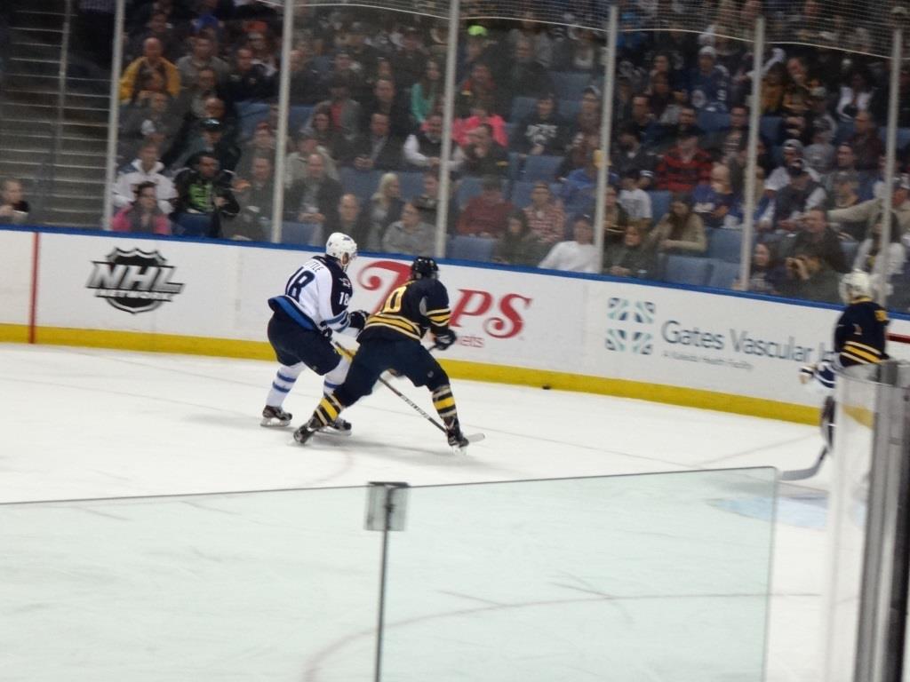 It is not often that we have the time to revisit and submit a follow-up to an earlier article, however, we were so impressed with pictures taken at the Winnipeg Jets/Buffalo Sabres NHL hockey game a few days back that we couldn’t resist. Setting the stage, we are in the best seats of our life at center ice and 11 rows back from the player benches.