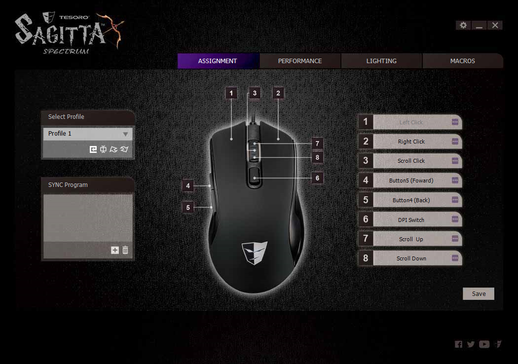 Sagitta is a plug and play mouse, but to get the most out of it you’ll need to download the driver/software from Tesoro’s website, Click Here!