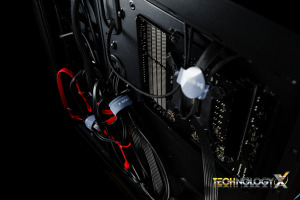 Cable routing was also easy in this case, with the grommet cable pass through holes and space behind the back panel, cables can be bundled together for zip-tied tidiness. When connecting SATA cables to the hard drives, there was a slight clearance issue with 90 degree connectors, straight SATA cable connectors are suggested to connect to drives.