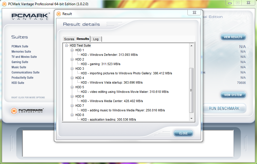 The SSD Review uses benchmark software called PCMark Vantage x64 HDD Suite to create testing scenarios that might be used in the typical user experience. There are eight tests in all and the tests performed record the speed of data movement in MB/s to which they are then given a numerical score after all of the tests are complete. The simulations are as follows: