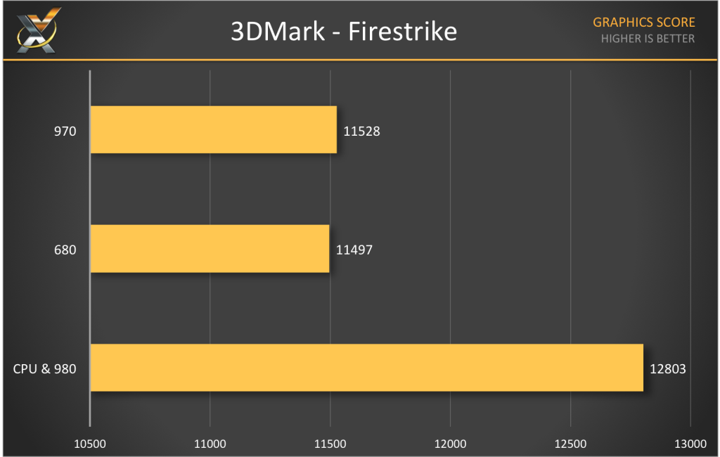 In our first testing scenario, we tested Fire Strike in three different configurations. The first being the stand-alone GTX 980 that is processing PhysX as well as the graphics. Next, we threw in an older card, the GTX 680 and dedicated it to PhysX processing. Lastly, we used a GTX 970 as a PhysX processor. Let’s take a look at how they performed: