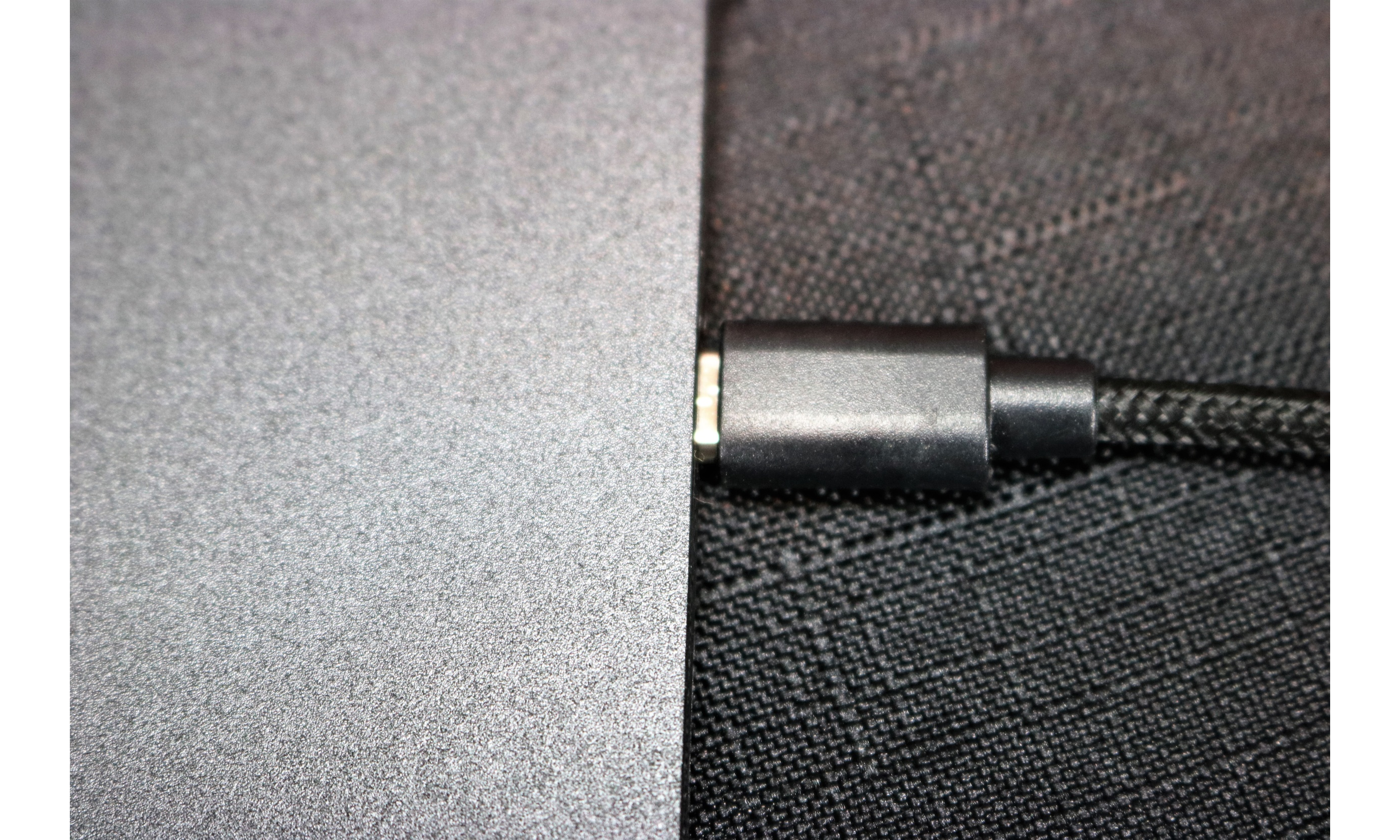 The power cable for the RGB is a micro USB to USB cord that runs straight out of the middle top of the surface itself with an in line RGB controller as well.