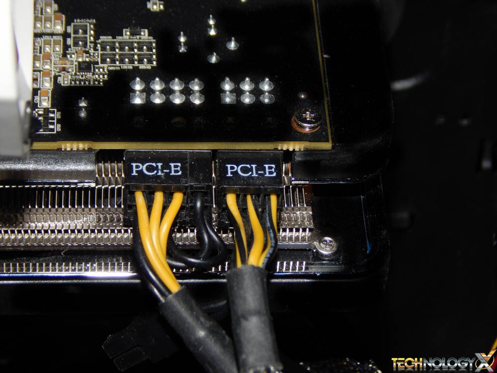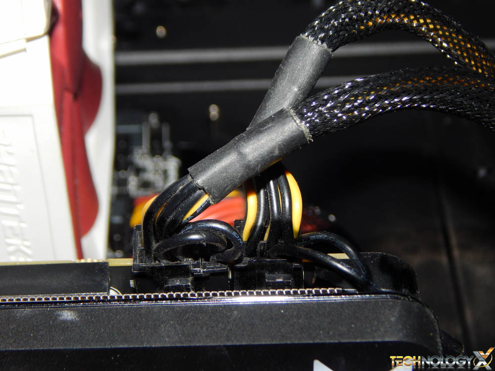 One of the pet peeves we had with this card is that the way the 6 and 8-pin power connectors are oriented because it required a lot of work to get off by hand as the heat sink is right up against the latches. Using a tool like a pair of needle nose pliers made life a lot easier.