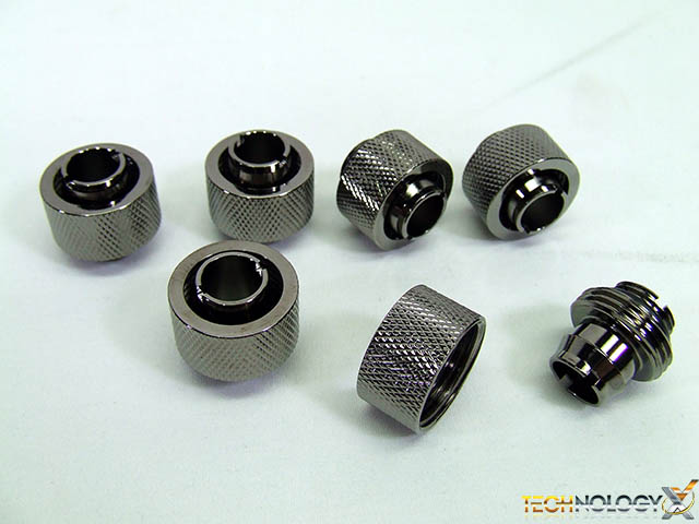 Also provided in the kit is 2 meters (about 6 feet) of clear 7/16″ tubing and six 7/16″ XSPC compression fittings in a dark chrome finish.
