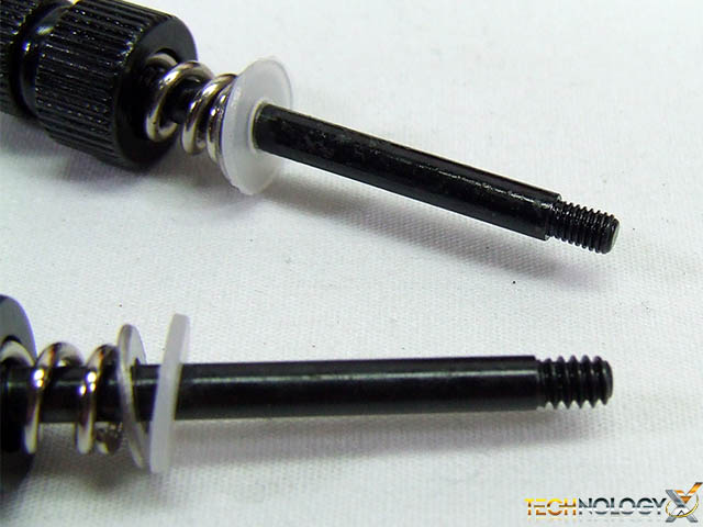 To install the CPU block you need to gather the above items – four screws, four springs, four metal washers and four plastic washers.