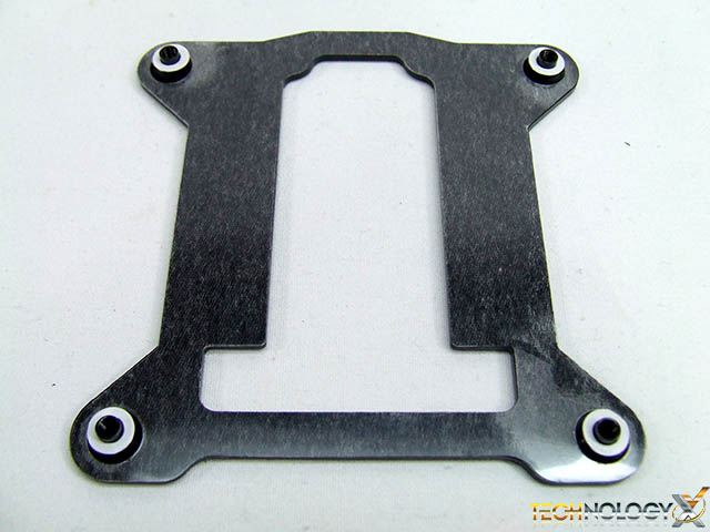 The back plate can only mount one way as the Intel socket has three screws – hence the “T” shaped cutout.