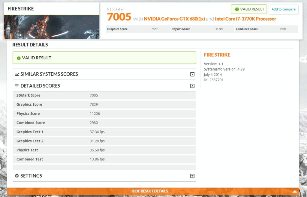 Lastly is Fire Strike, a graphics-intesive test that pushes your graphics card to the limit. It is highly unrecommended to use this test on anything other than a dedicated graphics card. Watch carefully as the hero fights off a lava guartdian-type villain, and witness massive fight scenes that take place over platforms only feet away from lava. Fire Strike is a DirectX 11 benchmark for higher-performance gaming PC’s and overclocked systems. Fire Strike is very demanding, even for the latest graphics cards.