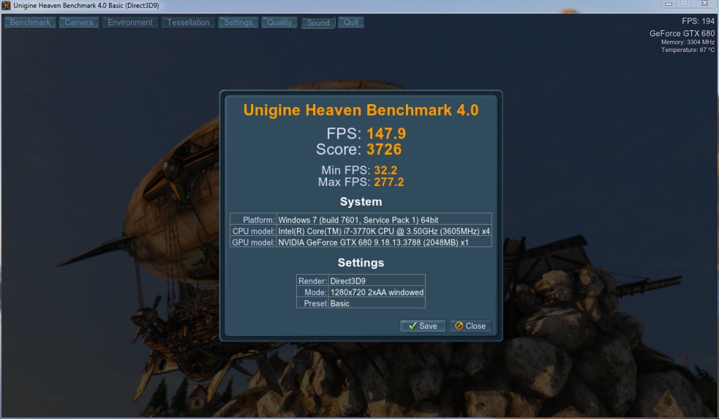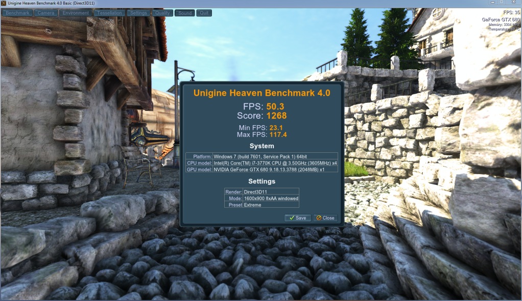Heaven Benchmark immerses a user into a magical steampunk world of shiny brass, wood and gears. Float around flying islands, a tiny village with its cobblestone streets, above the amazing sight of fluffy clouds, followed up by a dragon statue on the central square. This benchmark test is powered by the UNIGINE Engine again that utilizes the advanced capabilities of graphics cards. Here we have two presets to walk through: Basic and Extreme.