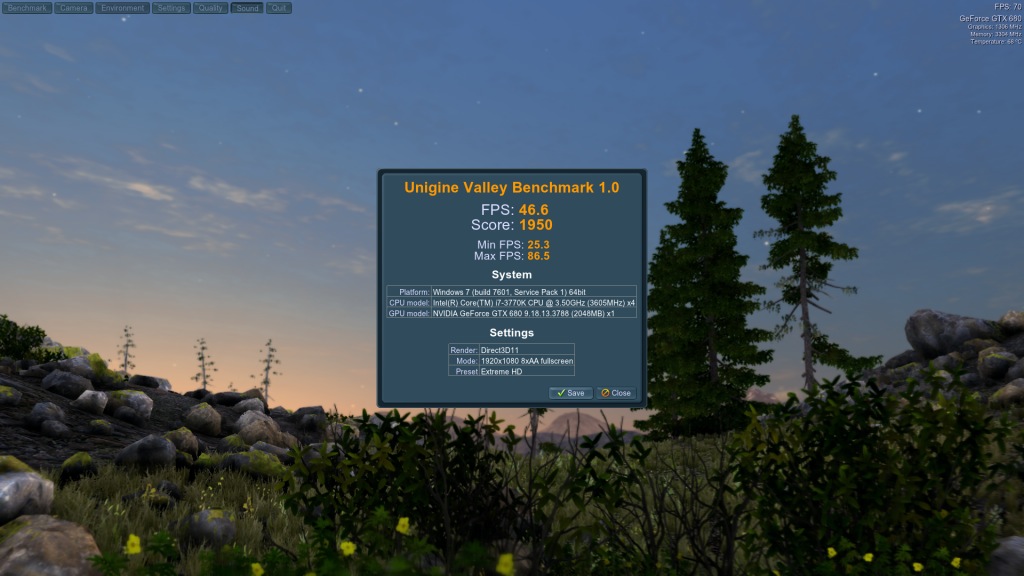 Both of the Unigine benchmarking products we are using today immerse the graphics card in a intensive environment to fully stress test the card. Valley allows you to check out life high up in the mountains, then you’ll be flying over the vast green landscapes and switch over to a mountain hike. There are three main test methods with Valley: Basic, Extreme and Extreme HD.
