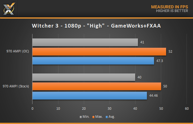 We test on “High” with NVIDIA HairWorks set to “Geralt” only, and post-processing set to “High” with FXAA enabled, at both 1080p and 1440p.