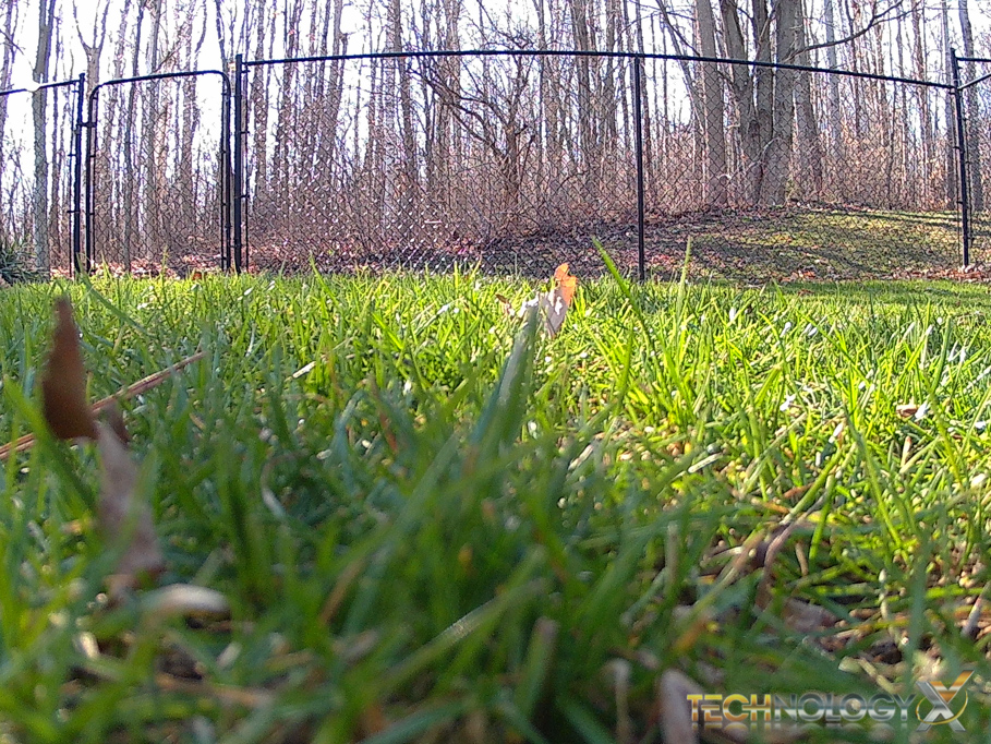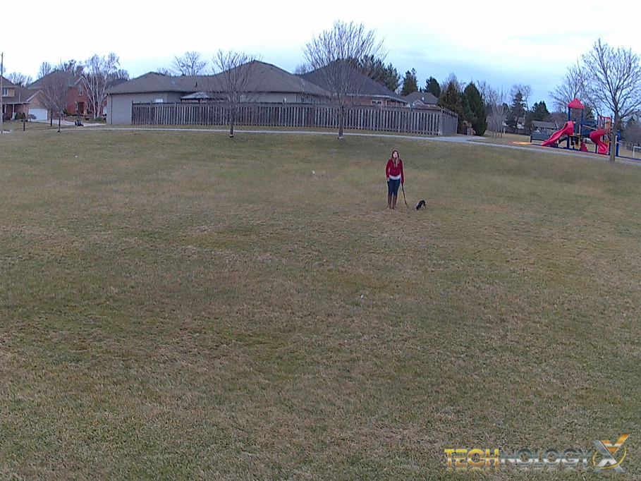 Below you will find a gallery of the photos taken by the included camera. These are nothing to write home about. Actually we found quality to be quite poor. At close-ish range there was no focus and there is no included image stabilization. It also has a fish-eye type distortion to it that severely hinders the photos. The grass image really shows the fish-eye distortion, where the image with the lady and the dog is very blurry.