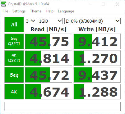 For sequential throughout, we see that in crystal disk mark the top write speed is only 9 MB/s, while read is a tad bit higher at 45 MB/s. The same can be said with AS SSD, as it was just shy of 9 MB/s write and 45 MB/s write. So we made a slight upgrade and swapped it out with Lexar’s 1800x microSDXC 64GB card. This not only gives us much more room to store our flight recordings, but it also gives us the speed to do so with ease.