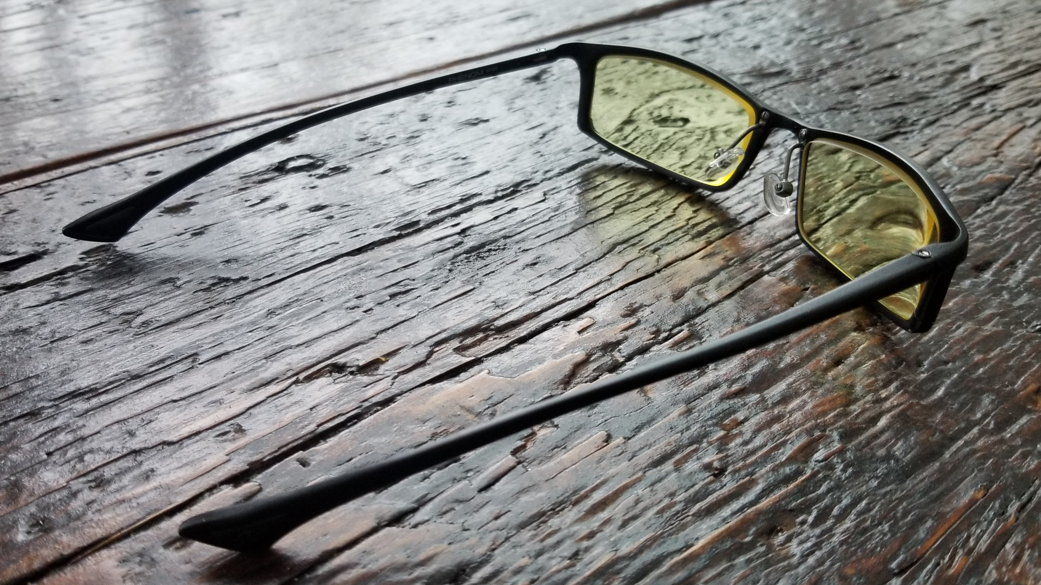 The GUNNAR lens’ ARE NOT GLASS which still seems to upset some but it doesn’t bother me whatsoever. We are reviewing amber lens progressives which protect against 65% of blue light and 100% of UV light. As these are progressives, I had to list my PD, upload my prescription and sort through the various available models for the perfect fit. The lens itself has beautiful clarity and focus, and as well, my peripheral vision when in front of my 3×27” monitors is amazingly clear. I never expected this. The lenses offer a medium index of refraction (1.51), have higher light transmission, are anti-reflective, and have a great hardened silicone scratch resistant coating which apparently maintains optical integrity over time.