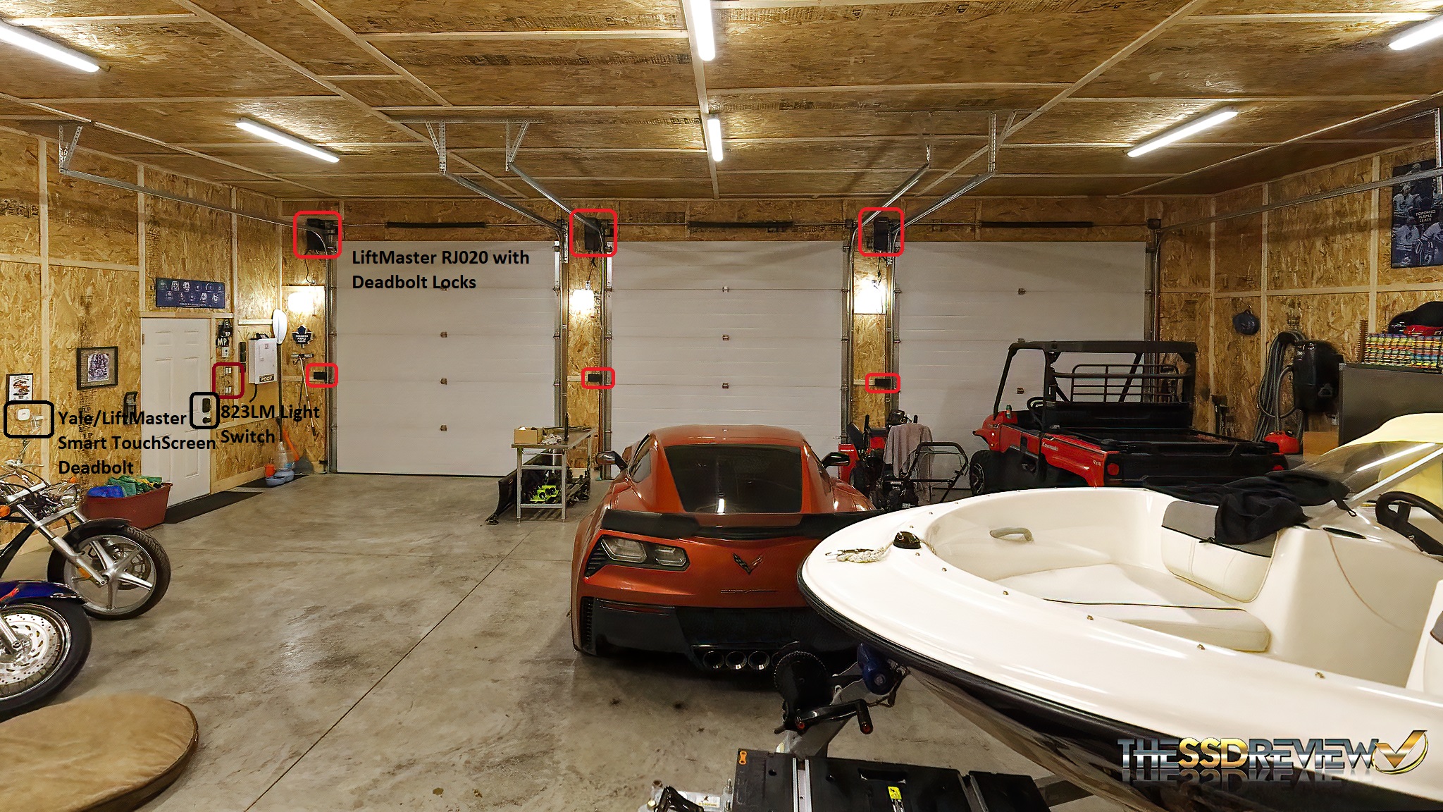 Next up, we added the LiftMaster Smart Garage Camera which is synced to start recording through any activation of the RJ020, and last but not least, we added a few LiftMaster 823LM Remote Light Switches which tie right in to the complete security package as they are again activated, with full notifications, with any interior movement in the garage. Even a chipmunk who fails to leave before the doors close will throw off the sensors, as we discovered almost immediately after camera installation.