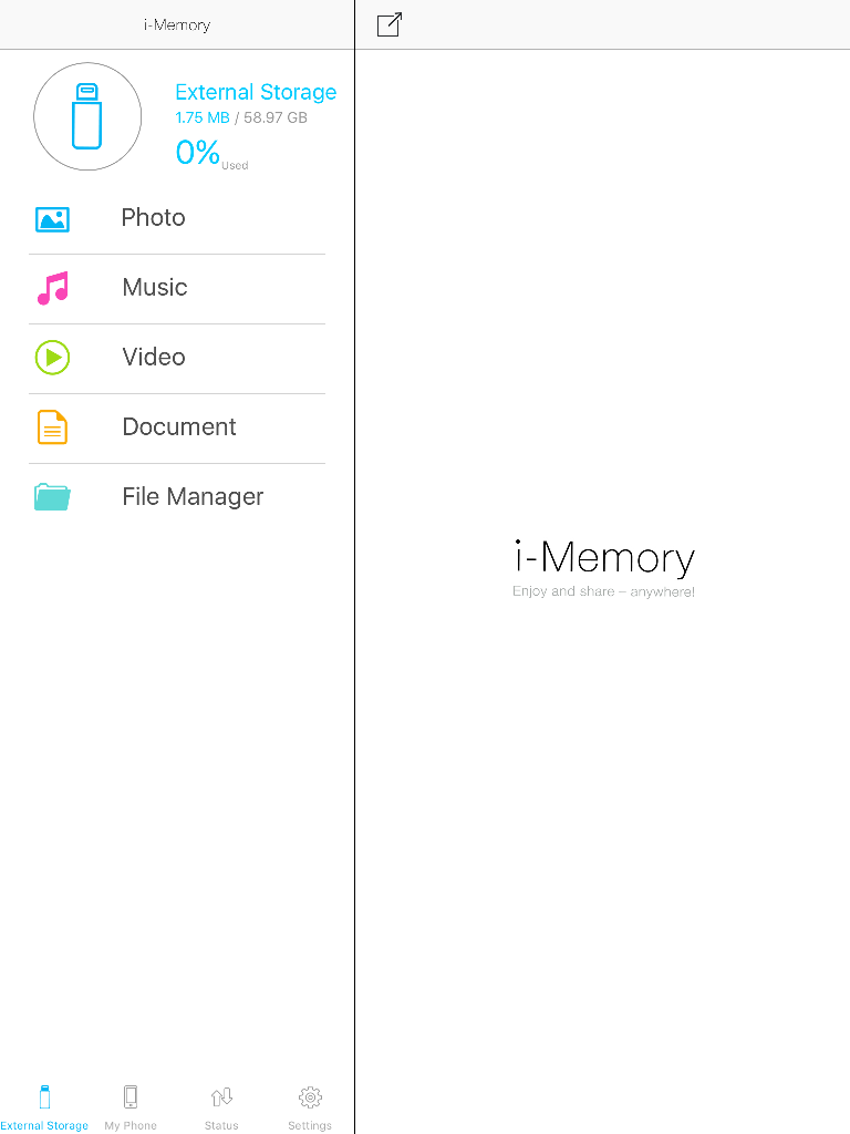 For the most part the drive works just as a USB drive and is plug and play as far as the computer side goes. To use the i-Memory Drive on your wireless devices you will have to download the iOS app. Type in i-Memory to the app store and it should be the first one that pops up with a logo like the one below.