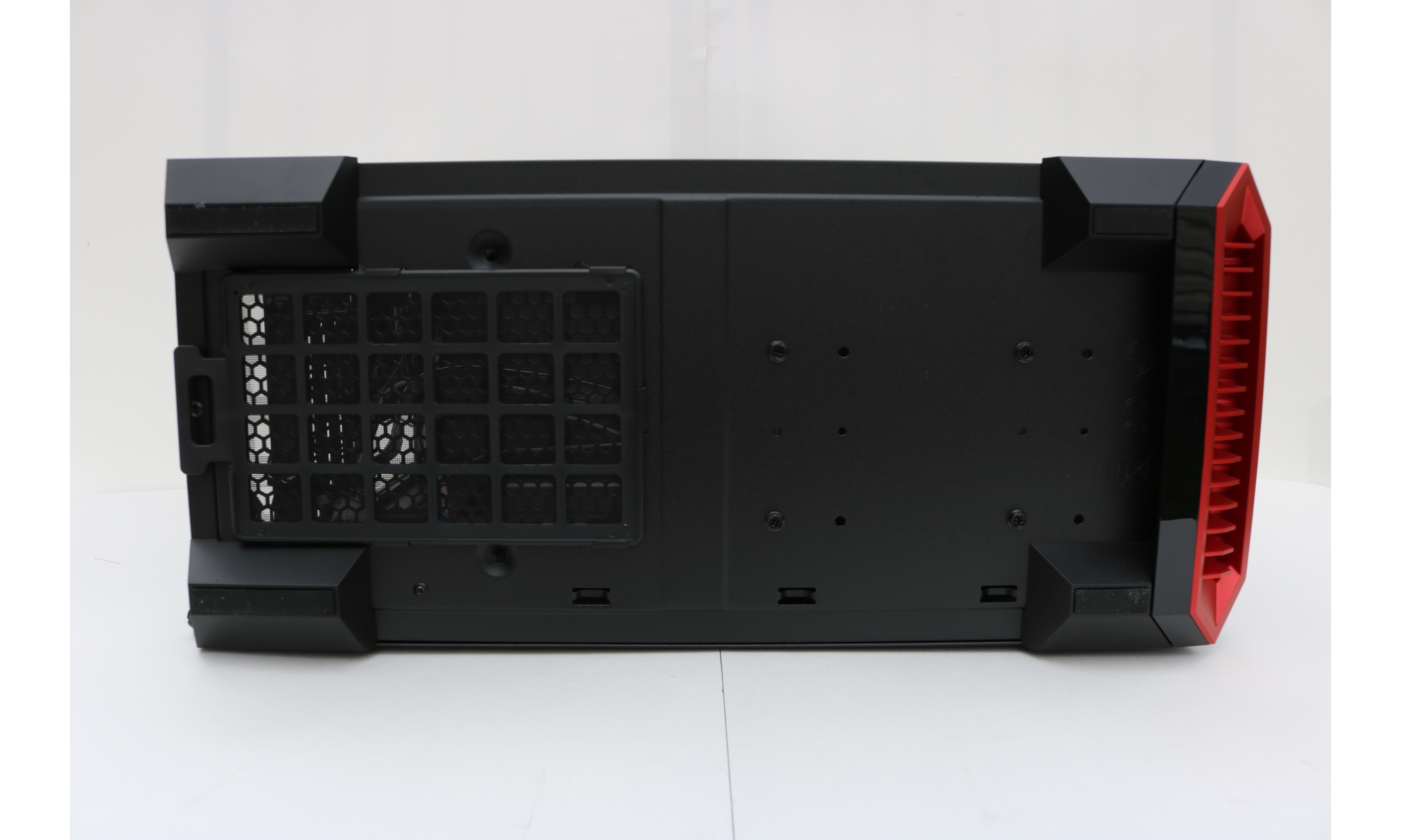 Located on the underside is a removable dust filter with four very sturdy rubber feet as well as mounting bolt holes for the internal drive bays.