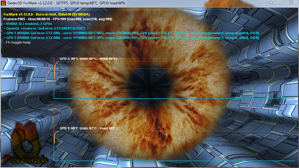 This benchmark uses fur rendering algorithms to measure the performance of the graphics card, which is specifically designed to overheat the GPU and to determine the stability of the card during times of intense stress. While the other tests had some exciting scenes to sit back and stare at, FurMark is a little less exciting. While it is not a test to “Set it and forget it”, it is also not a test you will want to watch for 15 minutes straight. We do encourage you now to utilize that laser thermometer, if you have one kicking around. Take a look at the temperatures recorded on-screen and what the card is actually listed it.