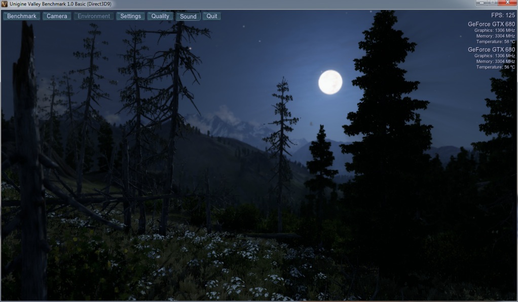 Both of the Unigine benchmarking products we are using today immerse the graphics card in an intensive environment to fully stress test the card. Valley allows you to check out life high up in the mountains, then you’ll be flying over the vast green landscapes and switch over to a mountain hike. There are three main test methods with Valley: Basic, Extreme and Extreme HD.